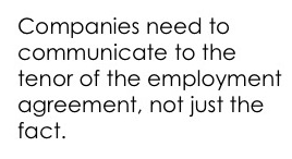 - Humanity deserves humanity: As cold as the naked employment deal is, though, it is always clothed in human terms. Companies need to remember this and communicate to the tenor of the agreement, not just the fact, behaving with integrity when bringing people in and when letting them go.